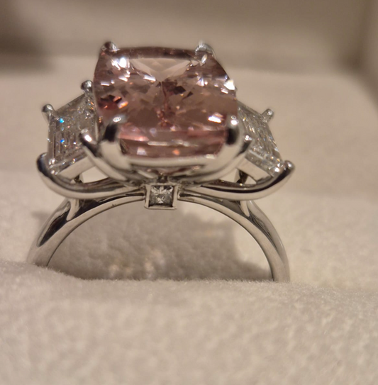 Genuine 18ct 18K White Gold - Size N - Pink Morganite Cushion 14x9mm (5.38cts) + Princess Cut Diamonds Lab Grown 7mm x 4mm Dress Ring