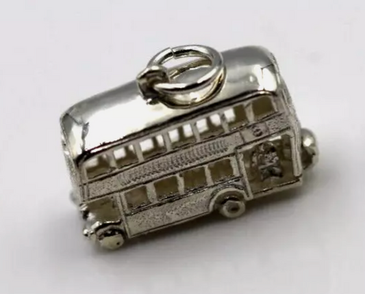 Sterling Silver 925 or 9ct Yellow Gold Double Decker Bus Opening Charm Pendant