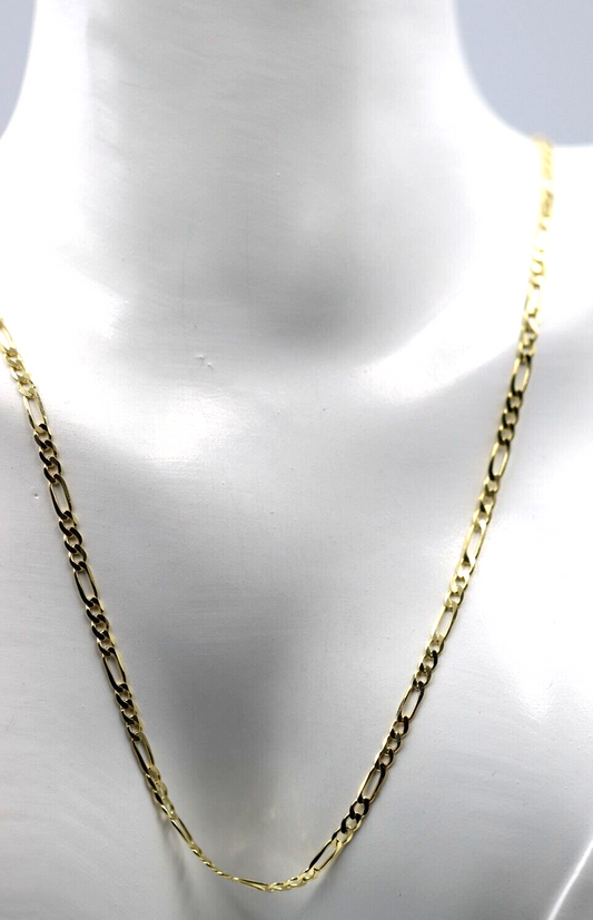 Genuine 9ct Yellow Gold Flat Diamond Cut Figaro Chain Necklace 5.6g 60cm 2.5mm