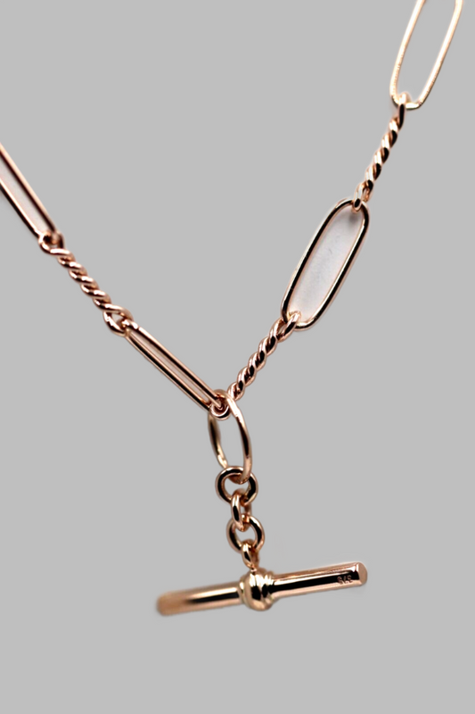 Handmade 50cm or 60cm 9ct 9k Yellow, Rose or White Gold Paper Clip Chain Necklace with T-Bar + Swivels