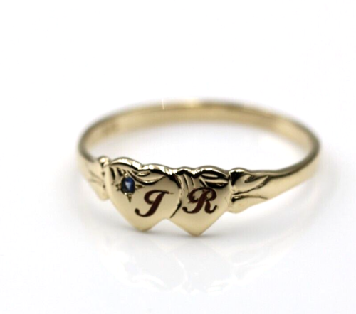 Genuine 9ct 9k Yellow, Rose or White Gold Aust Blue Sapphire Double Heart Signet Ring plus engraving
