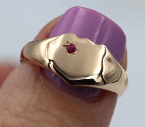 Genuine 375 Solid 9ct 9k Yellow, Rose or White Gold Shield Signet Ring set with Ruby