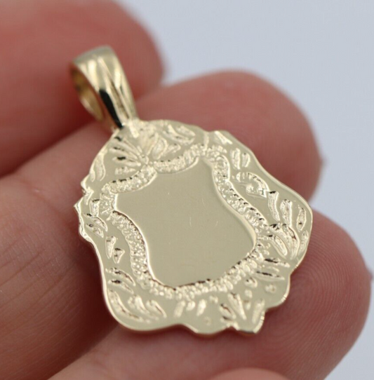 Genuine Solid 9K 9ct Yellow, Rose or White Gold Engraved Shield FOB Pendant