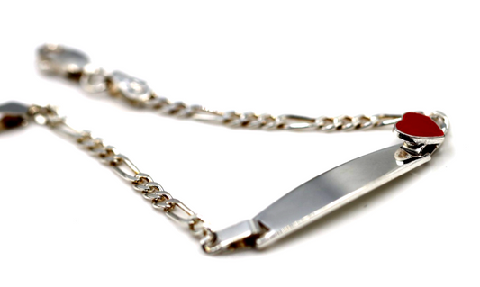 Sterling Silver 925 Childs Red Heart Identity ID Bracelet 16cm long