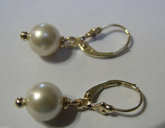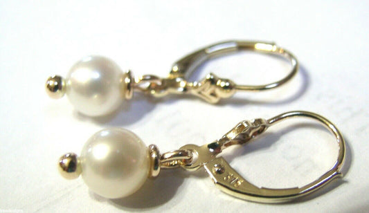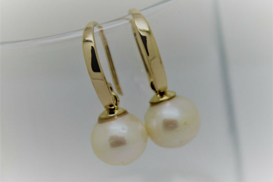 Kaedesigns, New Genuine 9ct Yellow, Rose or White Gold 7.6mm White Pearl Belcher Hook Earrings