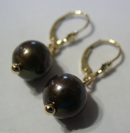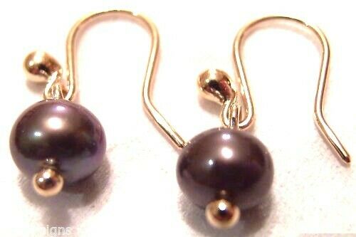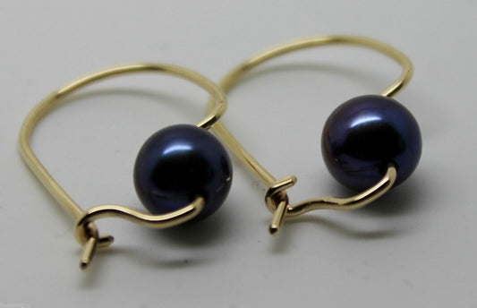 Kaedesigns, New Genuine 9ct 9k Yellow, Rose or White Gold 10mm Black Freshwater Pearl Hook Earrings