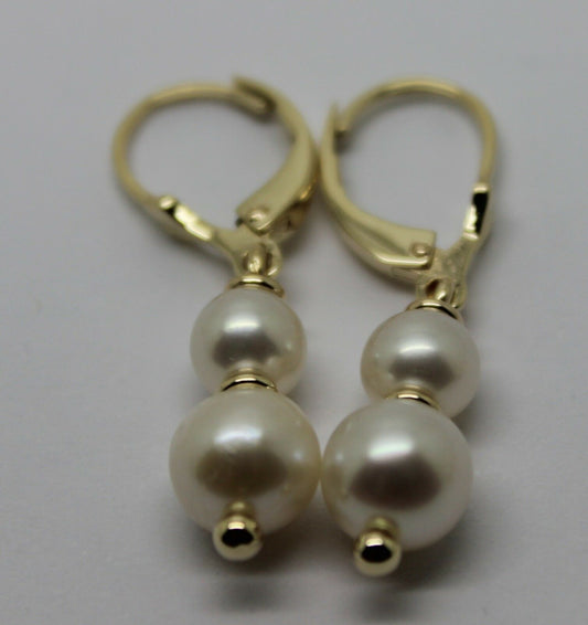 New 9ct 9k Yellow Gold 6mm & 8mm White Pearl Continental Clip Earrings