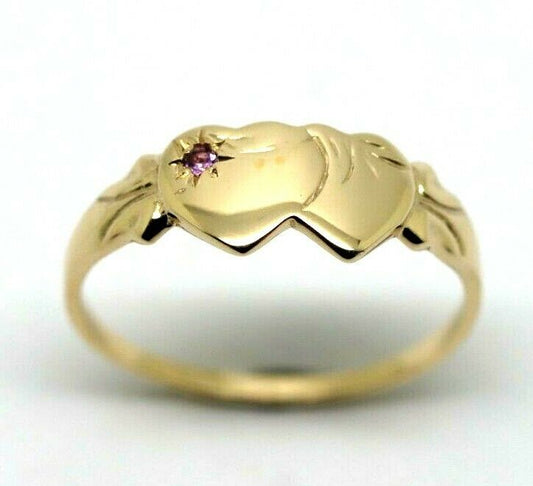 Genuine 9ct Yellow Gold 375 Amethyst (Birthstone Of February) Double Heart Signet Ring