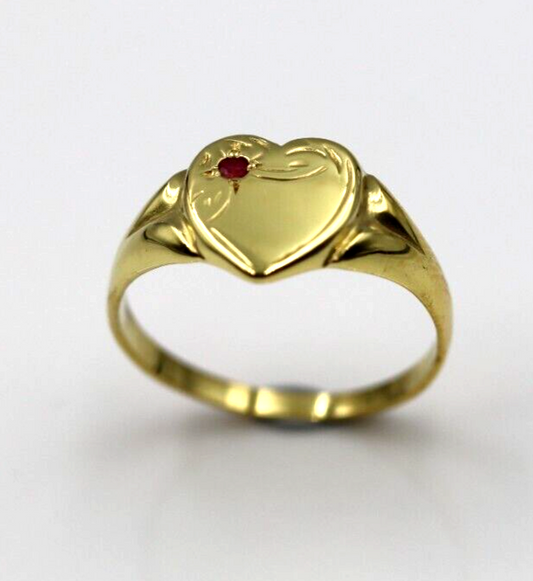 Size K Genuine 9ct Small Yellow, Rose or White Gold Childs Ruby Shield Signet Ring