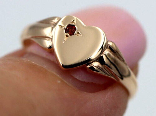 Size M Genuine 9ct 9K Yellow, Rose or White Gold Red Garnet Heart Signet Ring 265