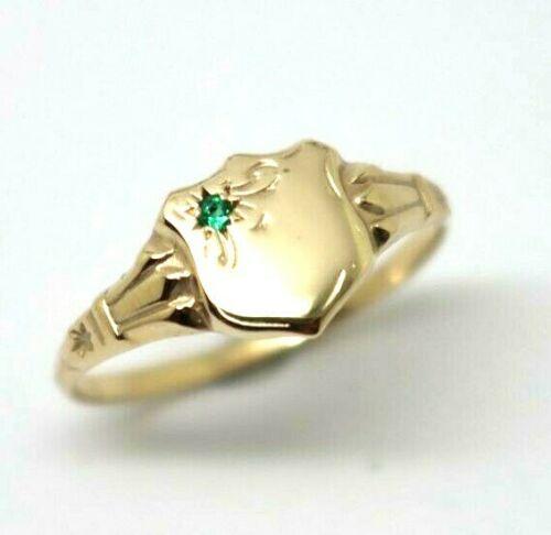 Genuine 9ct Small Yellow, Rose or White Gold Childs Emerald Shield Signet Ring - Choose your size