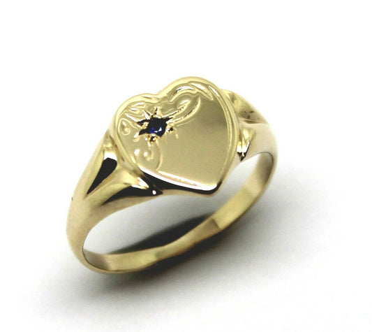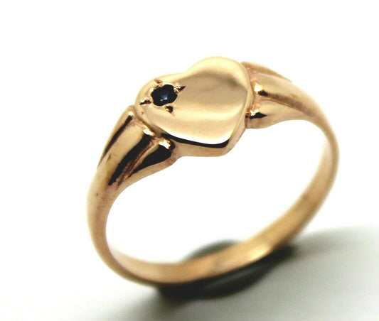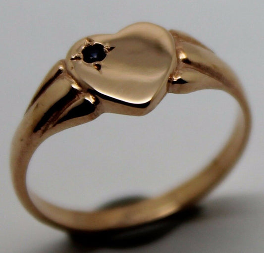 Genuine Size J 9ct Heart Rose Gold Blue Sapphire Heart Signet Ring