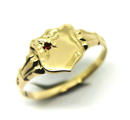 Size K 9ct Small Yellow, Rose or White Gold Garnet (Birthstone For January) Shield Signet Ring