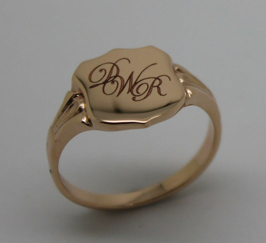 Genuine 9ct Solid Yellow, Rose or White Gold Large Signet Ring In Your Size P Plus Engraving 3 Initials