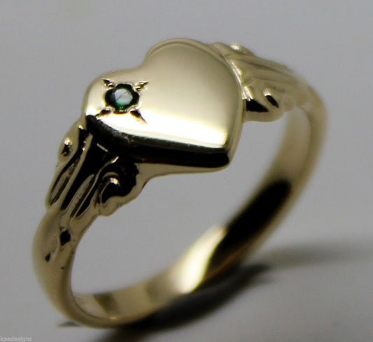 Kaedesigns New Genuine 9ct Yellow, Rose or White Gold Green Emerald Heart Signet Ring
