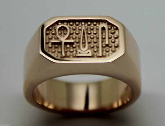 Size M 9ct Yellow, Rose or White Gold Ring Egyptian Hieroglyphic symbols - Success, Happiness & Health