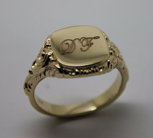 Genuine New 9ct 9k Yellow, Rose or White Gold Square Engraved With Your Initials Signet Ring 335