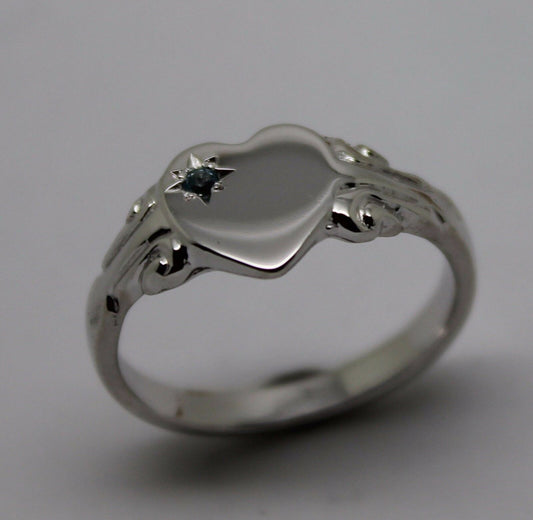 Genuine 9ct 9k White Gold / 375, Heart Topaz November Birthstone Signet Ring