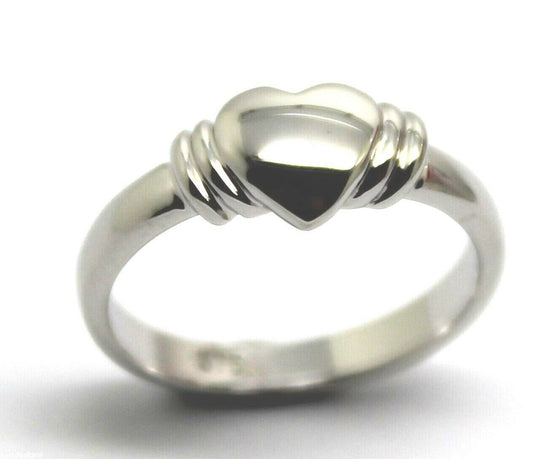 Genuine Size F 9ct 9k Small Solid White Gold Heart Signet Ring