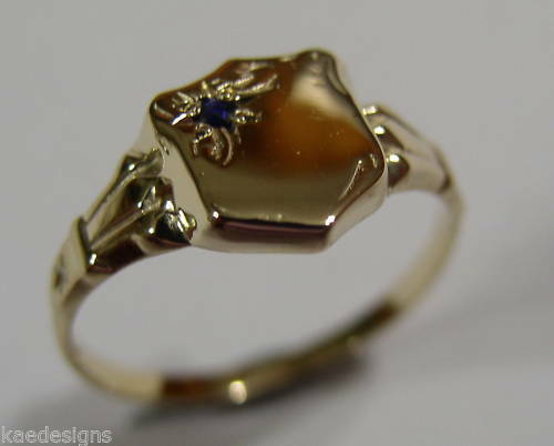 Genuine 9ct Small Yellow Gold Blue Sapphire Shield Signet Ring - Choose your ring size