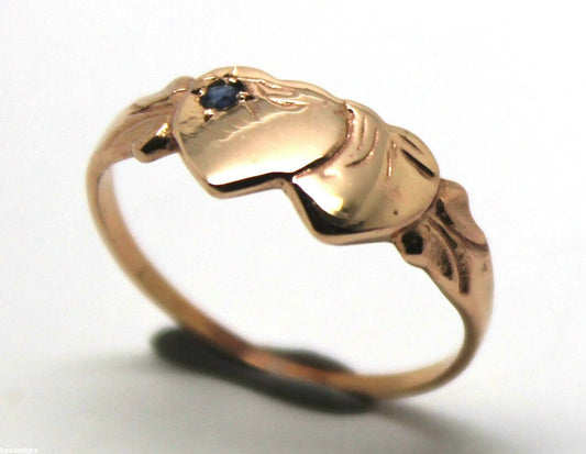 Genuine 9k 9ct Yellow, Rose & White Gold Aust Blue Sapphire Double Heart Signet Ring - Choose your size