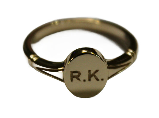 Genuine Full Solid 9ct Yellow, Rose or White Gold Oval Signet Ring Engraved With One Initial - Choose your size (sizes H to T)