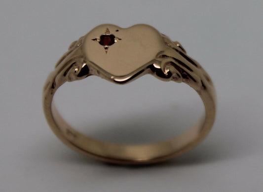 Size J, Kaedesigns 9ct Yellow, Rose or White Gold Heart Garnet Birthstone January Signet Ring