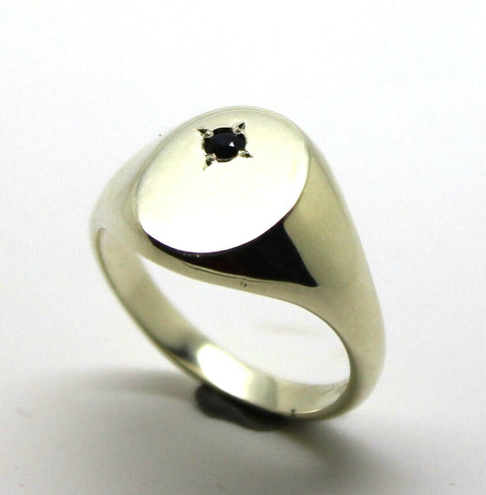 Genuine Size Q / 8 - 9ct 9k Yellow, Rose or White Gold Oval Signet Ring Size Q set with Black Australian Blue Sapphire