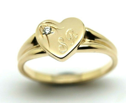 Size J Solid Genuine 9ct 9kt Yellow, Rose or White Gold Heart Signet Ring Diamond Ring