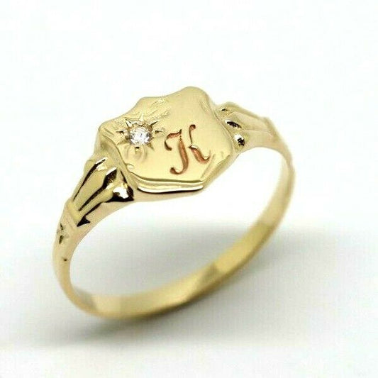 Size K 9ct Yellow Gold Cubic Zirconia Shield Signet Ring -Letter K