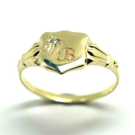 Size K 9ct Yellow Gold Cubic Zirconia Shield Signet Ring -Letter B