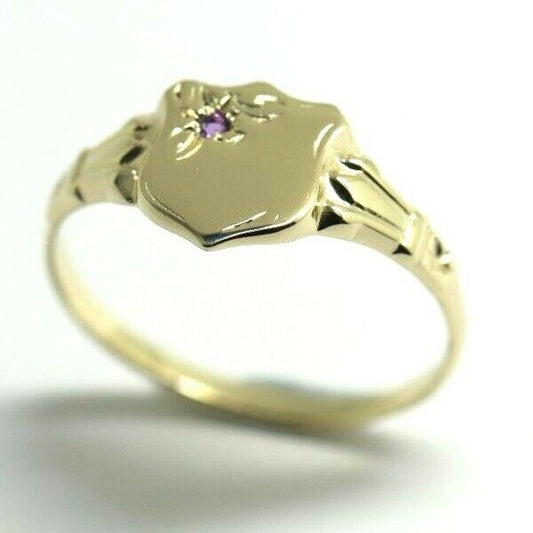 Genuine 9ct Small Yellow Gold Amethyst Shield Signet Ring - Choose your size
