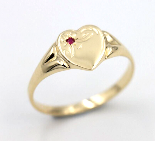 Size N Genuine New Childs Solid 9ct 375 Yellow, Rose & White Gold Heart Signet Ring 324