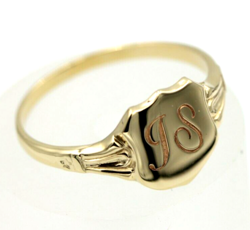 Size G 9ct 9K Yellow Gold Oval Signet Ring 9mm x 7mm + Engraving of 1 initial