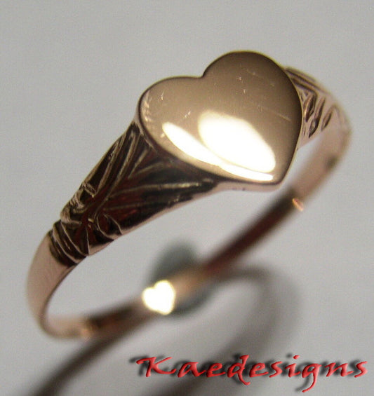 Kaedesigns, New Genuine New Solid 9ct Yellow, Rose or White Gold Heart Signet Ring Size S