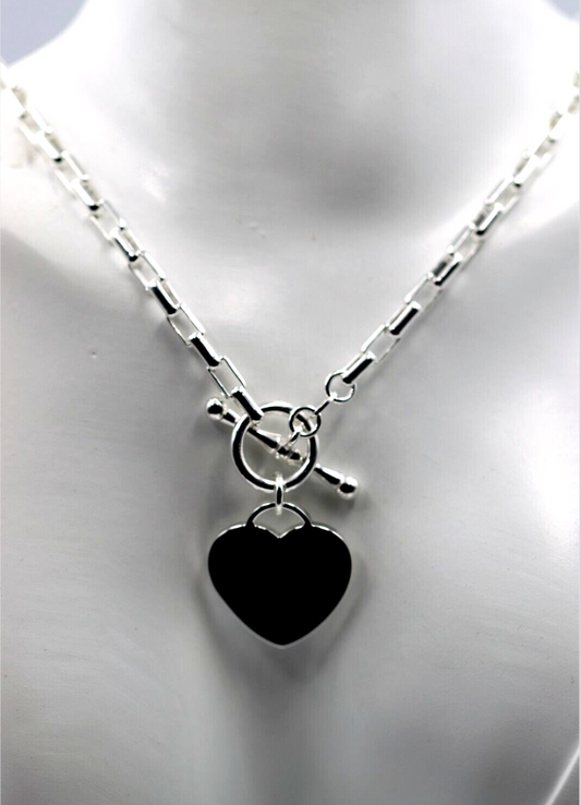 Genuine 45cm, 50cm or 55cm Sterling Silver 925 Cable Link With T-Bar And Heart Necklace (Copy)