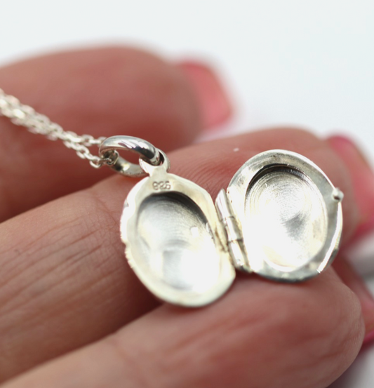Sterling Silver 925 Oval Small Locket Pendant With 2 Photos + Chain