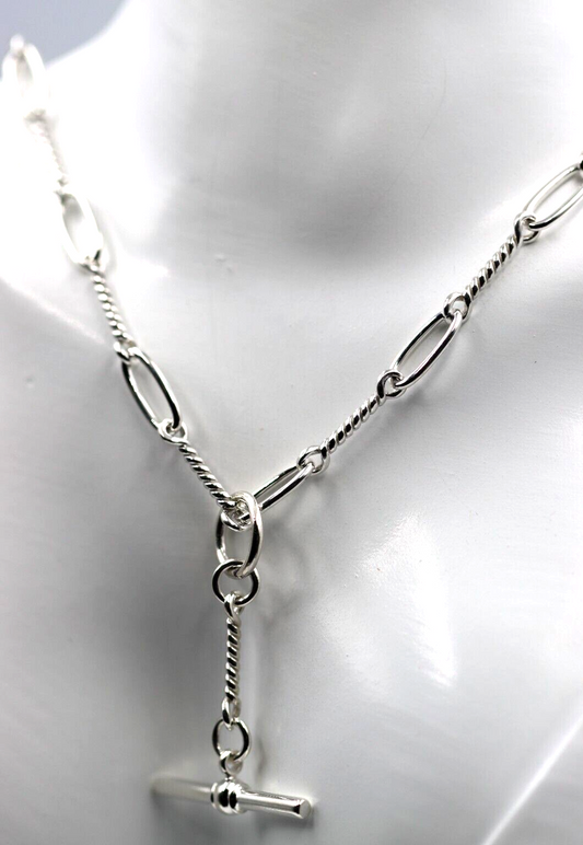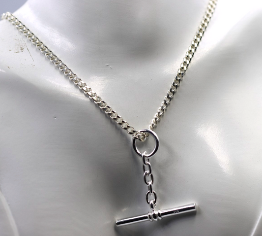 Sterling Silver 925 Curb Link + Removable T-Bar Necklace 42cm 16.51g