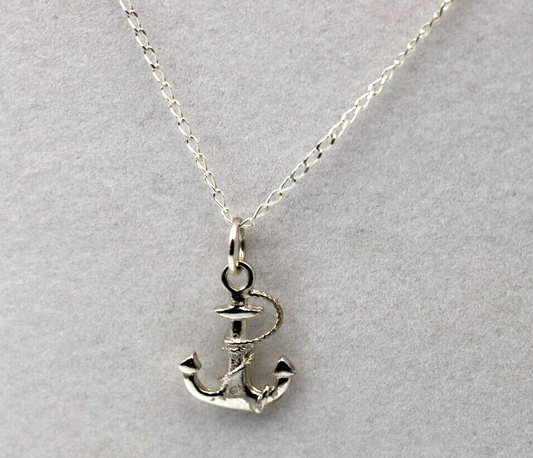 Sterling Silver 925 Anchor Pendant + 60cm Curb Necklace