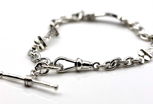 Genuine 925 Sterling Silver Antique Bracelet + Swivel + T-Bar
