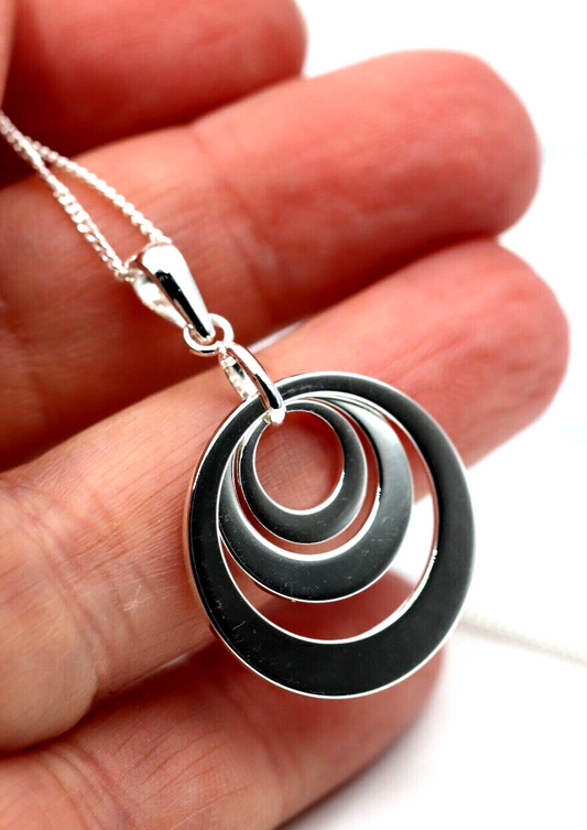 Sterling Silver 925 Chain Necklace Plain Triple Disc Pendant