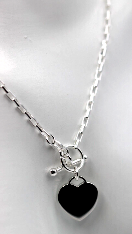 Genuine 45cm, 50cm or 55cm Sterling Silver 925 Cable Link With T-Bar And Heart Necklace