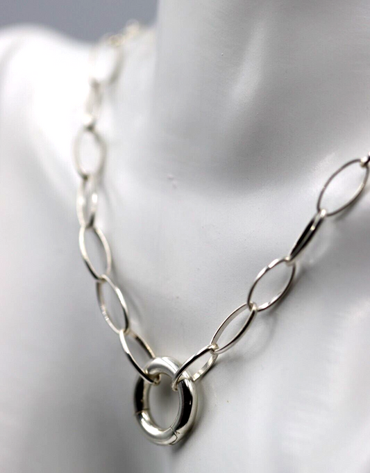 Sterling Silver Oval Paperclip Links Necklace Chain + Spring Ring - Free Post