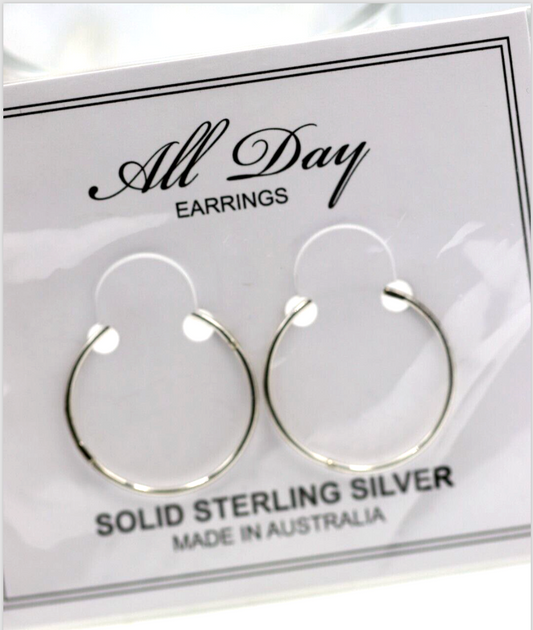 Genuine New Sterling Silver Sleepers Hinged Earrings Plain 20mm