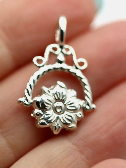 Genuine New Fancy Sterling Silver 925 Flower Spinner Pendant