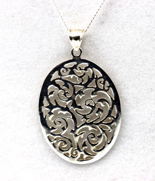 Sterling Silver Large Oval Filigree Pendant + 55cm Curb Necklace