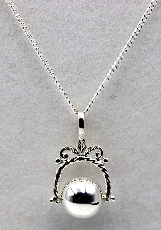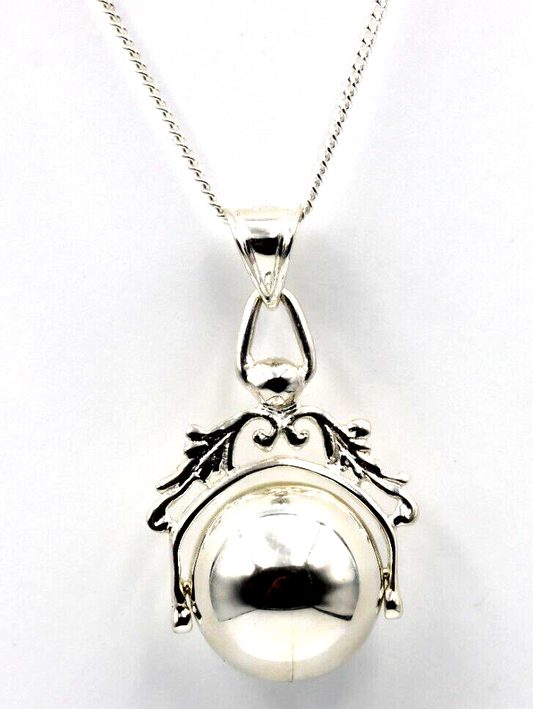 Sterling Silver 925 18mm Plain Ball Spinner Pendant + Necklace Chain