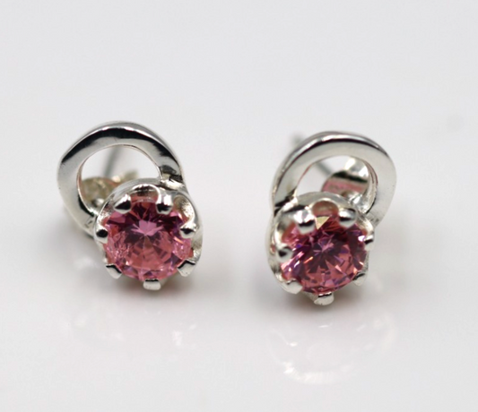 Genuine Sterling Silver 925 Round Pink Crystal Studs Earrings