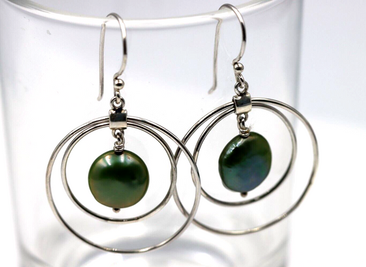Genuine Sterling Silver Round Circles Open Circle Mabe Pearl Earrings