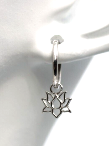 Sterling Silver Hoop Huggies 925 Lightweight Earrings Lotus Flower